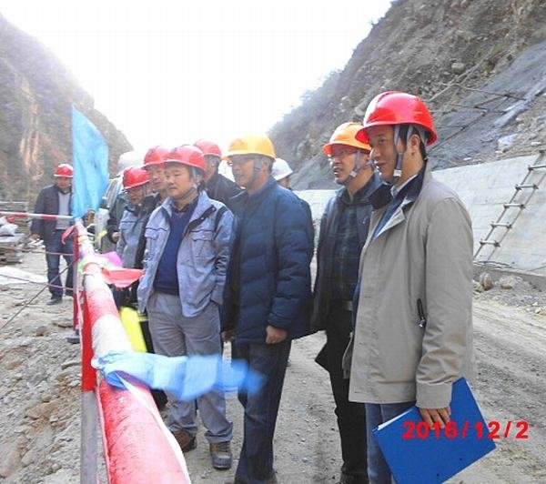 2016年12月2日下午,華電集團(tuán)水洛河公司總經(jīng)理蒲春雨率公司相關(guān)部門負(fù)責(zé)人到博瓦水電站首部樞紐工地現(xiàn)場檢查指導(dǎo)安全生產(chǎn)工作。