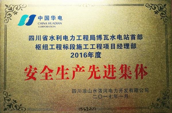 局博瓦電站項目部榮獲2016年度安全生產先進集體獎