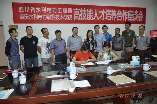 6月22日,重慶水利電力職業(yè)技術學院陳曉耘副院長率學院人事處張洪英處長、水利系肖主任、建筑系汪主任等一行,到工程局毗河引水工程項目部鄭家渡槽施工點、小巖寺隧洞施工點現(xiàn)場實地參觀考察,并就加強人才培養(yǎng)、實踐教學、技能指導、學生招聘等校企合作進行了友好協(xié)商,雙方本著資源共享、優(yōu)勢互補、相互協(xié)作、互惠互利、共同發(fā)展的原則,簽訂了《校企合作協(xié)議書》,同時,重慶水利電力職業(yè)技術學院特聘我局全國水利行業(yè)首席技師李春桃同志為學院技能導師,并與李春桃同志簽訂了《技能導師聘任協(xié)議書》。