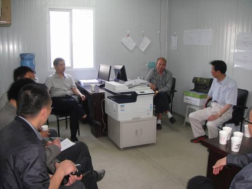 在項目部會議室,鄔清富一行與七處和項目部班子進行了座談。鄔清富首先預祝大家“五一”節快樂,對班子和職工的辛勤付出表示感謝。他十分關切節日期間職工的生活,囑咐項目部務必抓好食堂、飲用水等后勤保障工作。鄔清富強調,石亭江河道整治工程是救災工程、民生工程,意義重大,影響深遠,務必以高度的責任感、使命感、緊迫感抓好工程施工。他對項目部提出四點要求,一是抓好工程質量,做到內優外美。二是抓好安全生產,防患于未然。三是抓好工程資料整理,滿足驗收和審計要求。四是抓好工程結算和資金回籠。鄒世界代表七處和項目部感謝工程局、局黨委的關心支持,并表示將抓緊工程施工,確保5月底前完工,實現提前合同工期一個月的目標。