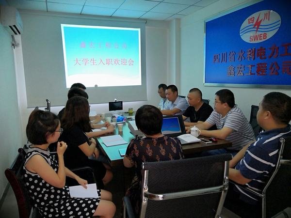 7月14日上午,鑫宏工程公司在都江堰辦事處舉行了大學(xué)生入職歡迎會。公司經(jīng)理、黨支部書記毛偉、副經(jīng)理曹軍、總工鄭中華、工會主席羅極川以及公司各科室代表參加歡迎會。