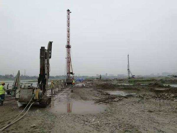 地基工程處于2020年10月初進(jìn)場承擔(dān)青神縣虎渡溪航電一枯圍堰上游及縱向高噴灌漿防滲工程施工,10月8號開鉆,10月12日開噴,處項(xiàng)目職工團(tuán)結(jié)一致、上下一心,通過精心組織,科學(xué)管理,于11月5日提前5天完成所承擔(dān)任務(wù),共計(jì)完成鉆噴588個,高噴灌漿5018m。目前基坑正進(jìn)行大面積開挖,高噴灌漿防滲達(dá)到預(yù)期效果。