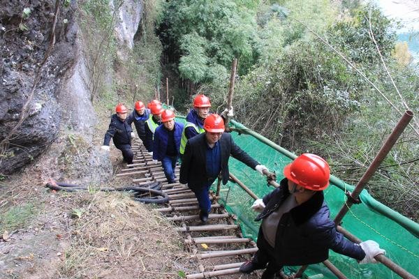 代勇一行在第一分公司經理范雪山、第四分公司經理羅茂林等陪同下,攀爬崎嶇陡峭的鋼管架設人行棧道,分別到達距離地面高73m的2#勘探平硐、距離河床高30m的1#勘探平硐以及5#勘探平硐,詳細了解工程現場的施工進展情況和施工難度。代勇首先代表公司黨委對春節期間仍堅守施工的第一、四分公司全體干部職工表示感謝和慰問,同時指出此行也是春節前對工地現場進行的安全大檢查,并對存在的安全隱患提出了整改要求。