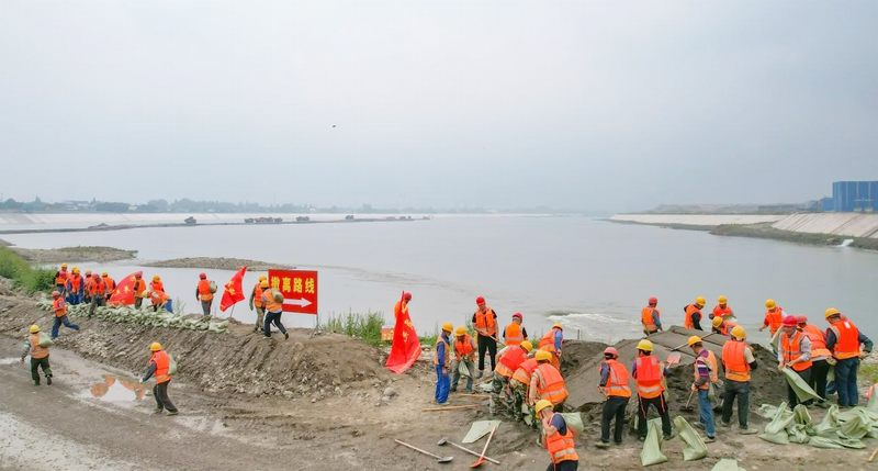 此次演練活動地點在青神縣岷江虎渡溪航電樞紐工程閘壩二枯圍堰部位,按照演練應急方案,演練環節主要內容為:二枯圍堰船閘等部位正在施工,巡查人員發現,二枯上游圍堰外側河道水位猛漲有漫壩的可能,現場情況十分危急,施工作業人員生命和國家財產安全面臨嚴重威脅。模擬場景一:應急搶險人員及設備撤離至指定安全位置;模擬場景二:撤離人員在撤離途中有人受傷處置場景;模擬場景三:應急隊員用防洪沙袋加高圍堰。繼續跟蹤監測水位險情情況直至水位下降安全演練結束。本次演練活動,在參建各方配合下,各演練工作組動作迅速、密切配合、銜接有序,為搶險救災爭取了寶貴時間。