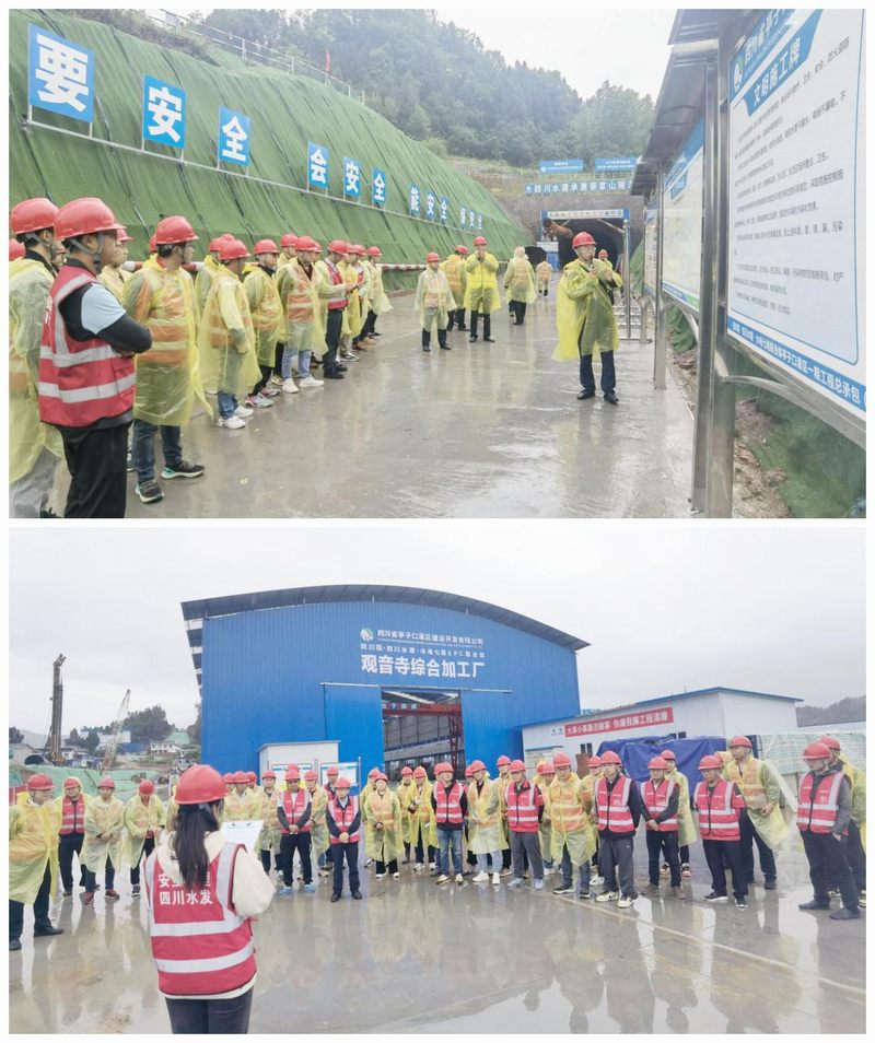 亭子口項目部總工程師張君寶主持現場教學,參訓專職安全管理人員在蔡家山隧洞接受現場授課,在觀音寺綜合加工廠認真觀察學習。在進行現場教學前,參訓人員接受了項目部專職安全管理人員的安全告知。