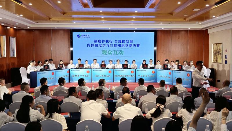 公司內(nèi)控制度學(xué)習(xí)宣貫知識競賽秉承“科學(xué)規(guī)范、集約高效”的管理理念,旨在以內(nèi)控制度宣貫為抓手推進公司合規(guī)文化建設(shè),并融入公司“川水善建映初心”黨建文化中。自啟動預(yù)賽以來,在公司的高度重視及知識競賽活動領(lǐng)導(dǎo)小組的統(tǒng)籌部署下,領(lǐng)導(dǎo)小組辦公室及各工作組有序推進競賽活動,集思廣益、通力合作,認(rèn)真籌辦決賽工作,共同推動競賽活動順利進行。各分(子)公司以及總部各部門充分動員、科學(xué)組織,全面開展內(nèi)控制度知識宣貫學(xué)習(xí),共有100余名干部職工以筆試答題等形式參加了預(yù)賽,營造了競相參與、比學(xué)趕超的學(xué)習(xí)氛圍。通過競賽,進一步增強了公司干部職工的制度意識與合規(guī)理念,達到了“以賽促學(xué)、以學(xué)促行、以行促建”、護航公司高質(zhì)量可持續(xù)發(fā)展行穩(wěn)致遠的目的。