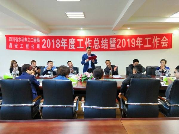 2019年4月11日,鑫宏工程公司在都江堰水利大廈會議室召開了2018年度年終總結暨2019年工作會。會議由公司辦公室主任何莉容主持。