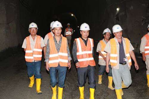 經過兩天17000公里的長途飛行,在抵達厄瓜多爾TP項目部后,鄔局長不顧旅途勞累和時差影響,在項目部經理高代勝、副經理楊聰明、李靜、王安明等項目相關人員陪同下,先后到取水口閘壩樞紐、壓力隧洞進出口、地下廠房、尾調室、泄水洞等施工現場察看,詳細了解施工技術方案、設備、材料、人員,特別是厄瓜多爾當地勞務人員等具體情況,并不時提出指導意見。