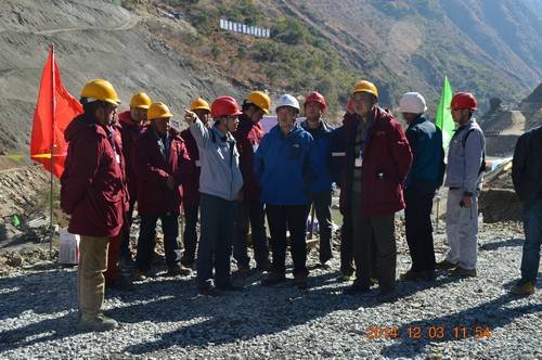 2014年12月3日上午,水洛河公司總經(jīng)理蒲春雨、副總經(jīng)理周有志、工程部副主任汪浩、固滴建管部主任晏國順、監(jiān)理部常務(wù)副總監(jiān)張鳴生和設(shè)計等一行蒞臨固滴電站首部樞紐工程施工現(xiàn)場檢查指導(dǎo)工作,察看了由我局承建施工的固滴電站首部樞紐工程。局水洛河固滴水電站首部樞紐項目部常務(wù)副經(jīng)理毛偉、副總工鄭中華、生產(chǎn)副經(jīng)理張方清、安全副經(jīng)理袁友軍及項目部門負責(zé)同志參加陪同。
