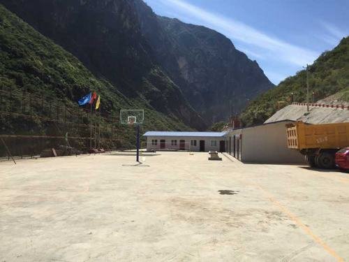 水洛河潺潺的流水,斜陽映襯著青翠的山巒。在這美麗的山水圖畫間,天藍(lán)色的板房錯(cuò)落有致,嫩芽初上的花臺(tái)上隨風(fēng)飄揚(yáng)的徽旗略顯莊嚴(yán),白灰色的籃球場(chǎng)上時(shí)而傳來陣陣喝彩……博瓦水電站首部樞紐工程項(xiàng)目經(jīng)理部臨建設(shè)施已建成投用。