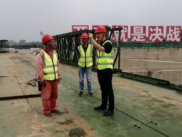 在項目經理程靜、總工趙玉成等項目成員的陪同下,袁斌一行深入發電廠房、安裝間、貝雷橋搭設、二枯上游圍堰戧堤填筑處等施工部位進行檢查,并對二枯施工規劃提出指導性意見。