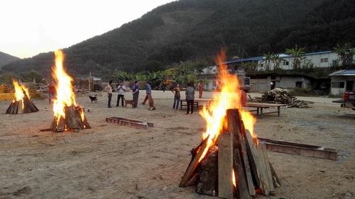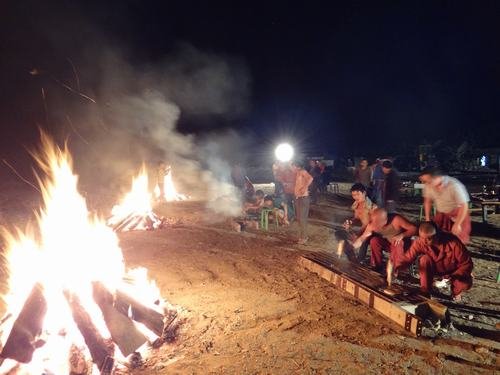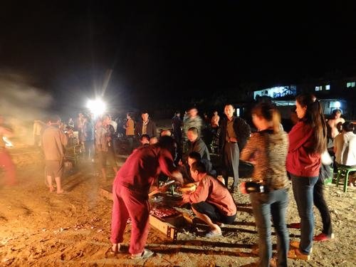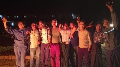傍晚,在結束了一天的工作之后,大家興高采烈把燒烤備用物品搬到生活區空地上。點燃篝火,項目部職工、各施工隊民工以及當地緬甸工人圍坐在一起,一邊燒烤一邊閑談,整個場面十分熱鬧。特別值得一提的是這次燒烤從工具的準備、食材的處理、味道的調制到最后烤熟都是大家自親自動手,互相配合,共同完成。因此,吃到嘴里不僅有燒烤的芳香還有滿滿的成就感。