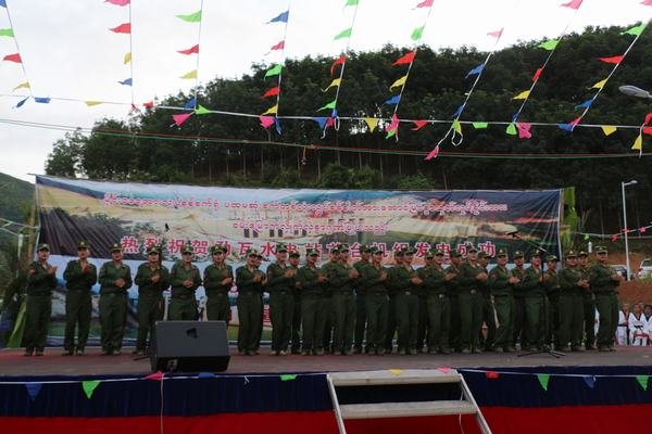 為慶祝首臺機組發電,南板地區管委會和911旅特別組織部隊、地方宣傳隊到電站施工現場進行慰問演出,勐瓦電站參建各方全體人員參加了這次慶?;顒?。
