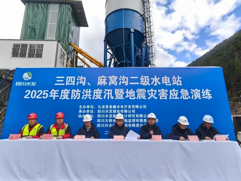 2025年4月26日,九龍縣三四溝、麻窩溝二級水電站項目部在發電廠房區域開展2025年度防洪度汛暨地震災害應急演練。