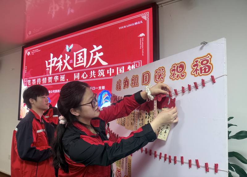 筆墨傳心意,同心賀華誕。在“我為祖國(guó)送祝福”環(huán)節(jié),現(xiàn)場(chǎng)氣氛熱烈而溫馨,每位職工懷著對(duì)祖國(guó)的深切熱愛,在祝福卡片上認(rèn)真書寫心中的祝福與期盼,并將卡片粘貼在祝福墻上,讓一張張卡片匯聚成紅色的“祝福矩陣”,為祖國(guó)獻(xiàn)上最真摯的禮贊。