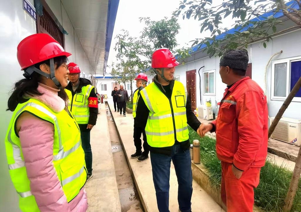 在項目部相關負責人的陪同下,夏永紅一行察看了兩個項目施工現場安全生產、文明施工情況以及職工生活區、辦公區安全衛生、消防設施等情況,要求項目部做好疫情防控狀態下職工的安全防護、衛生健康及消防安全工作,確保職工身體健康和生命安全,確保公司全年安全生產目標的實現。在和一線職工親切交談中,他詳細詢問職工的生活工作情況,叮囑大家一定要增強安全生產意識,舒心工作,快樂生活。