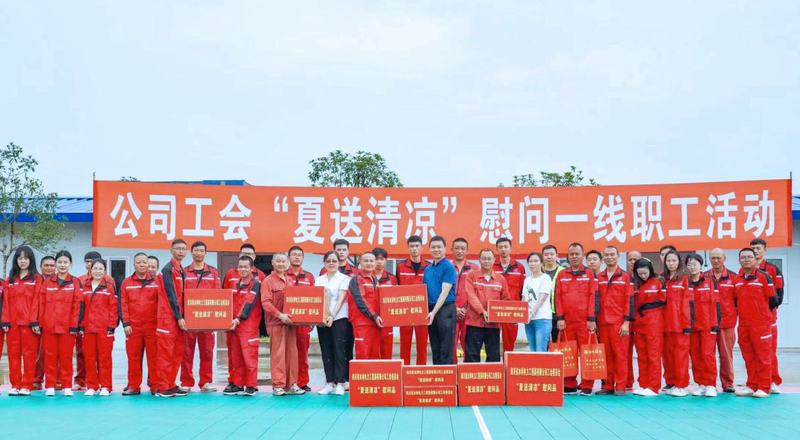 8月5日,公司黨委委員、職工董事、工會主席夏永紅,紀委委員、工會副主席付麟麗,工會辦公室主任秦利一行到青神虎渡溪航電樞紐工程項目開展“夏送清涼”慰問及工作調研,為一線職工送上防暑降溫物品,帶來組織的關懷。